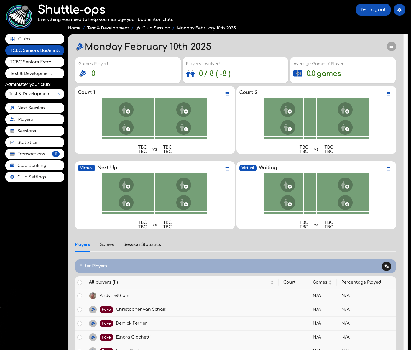Once you've created a session in ShuttleOps, you can easily track attendance, manage games, and view insightful stats to keep your club running smoothly. Here’s how to get the most out of your session pages.